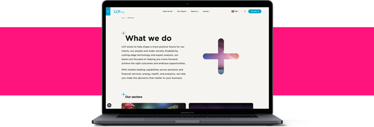 LCP successfully evolved from a traditional pensions consultancy into a diverse firm known for their market leading advice in pensions, investment and insurance, and were developing a reputation of excellence in energy transition, health, and sports analytics.