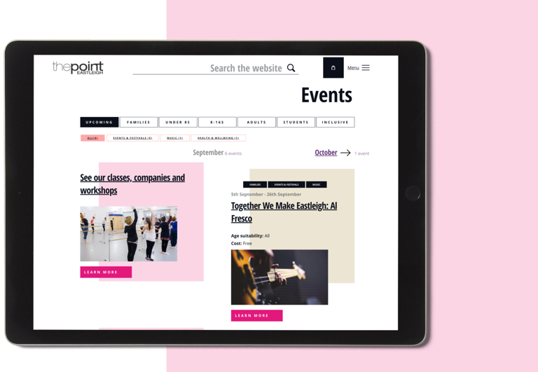The venues (The Point and The Berry Theatre) wanted to move box office systems to Spektrix, and simultaneously launch a new website that seamlessly integrated into this.