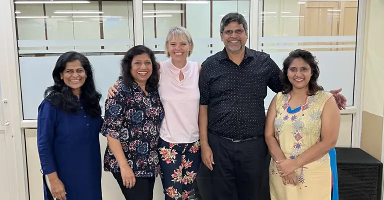 Shelly Frame with Jeevan Asha Chairman & Founder, Basil D'Souza, his wife Cathy, and team members Rosie and Carol.